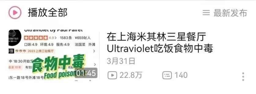 3月31日,王先生将自己的经历发布在视频网站上,目前已有逾20万播放量,“不管一家餐厅多么受追捧,如果连食品安全都做不到,那么请不要参与米其林或者黑珍珠榜单,让大家花钱受罪。”