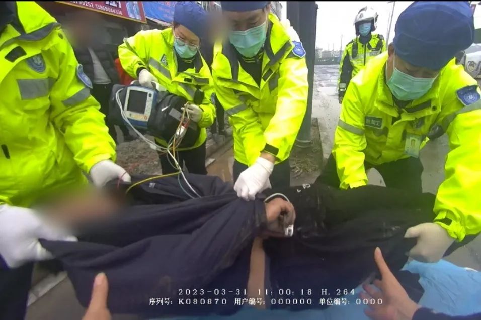 民警下车后飞快上前查看倒地男子情况,然而辅警包杰看到男子的第一眼,就认了出来,“这不就是刚才报警帮助老人的朱先生吗?”
