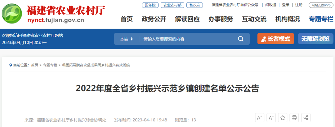 40个!2022年度福建全省乡村振兴示范乡镇创建名单公示了