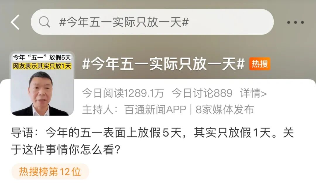 #今年的假期余额只剩6天了#也登上热搜根据《我国法定年节假日等休假相关标准》,我国现行法定年节假日标准为11天,全体公民放假的节日根据2013年《国务院关于修改<全国年节及纪念日放假办法>的决定》(国务院令第644号),具体为:新年,放假1天(1月1日);春节,放假3天(农历正月初一、初二、初三);清明节,放假1天(农历清明当日);劳动节,放假1天(5月1日);端午节,放假1天(农历端午当日);中秋节,放假1天(农历中秋当日);国庆节,放假3天(10月1日、2日、3日)。
