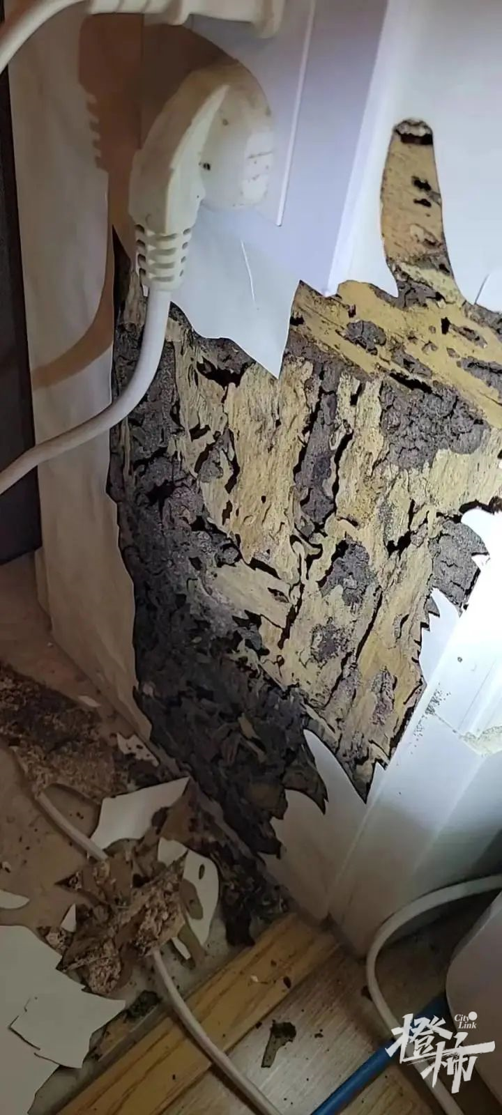 “后来我儿子特地半夜三更仔细听,发现是从衣柜后面的墙内传出来的,便找来工具将墙打烂点,结果发现里面有白蚁。”这一发现让她吓了一跳,找来专家一看,家里的地板下、衣柜后、门套里,都已经爬满了白蚁。 “专家说,这个白蚁至少已经筑巢五六年了,都已经成规模了。”去年,周女士全家进行了一次白蚁消杀,还把蛀坏的地板和衣柜全换了。