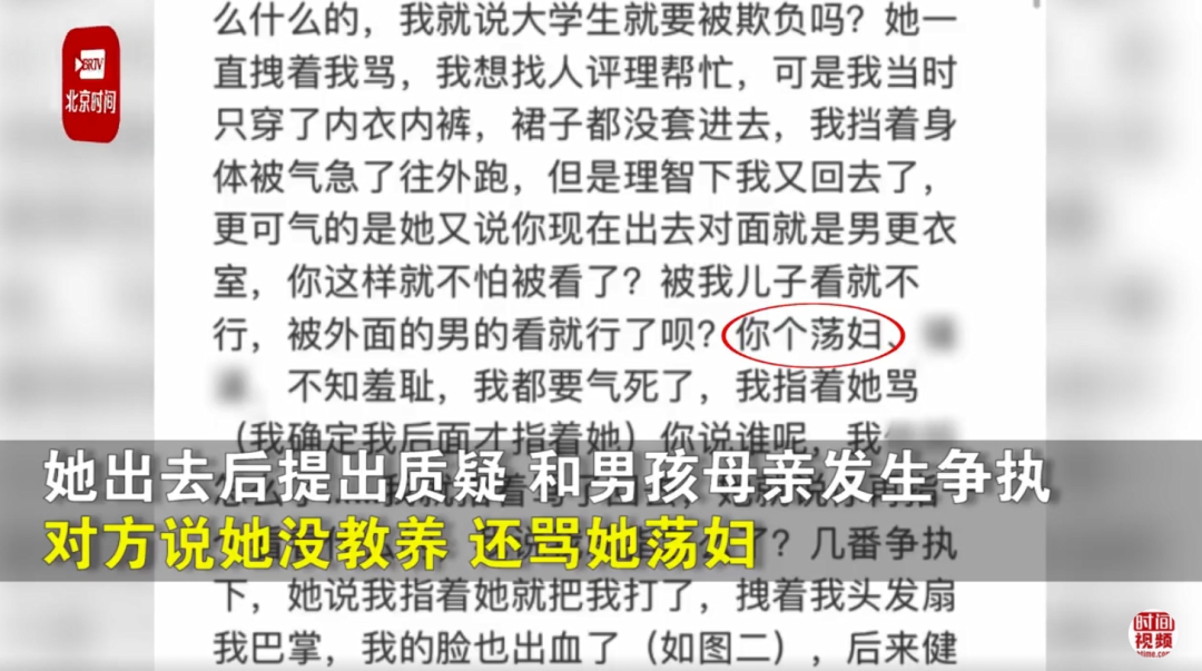 女生说,报警后对方仗着更衣室没有监控拒不赔偿,还称儿子被吓哭索要精神赔偿。