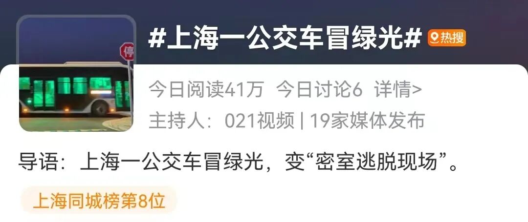 密室逃脱现场!上海一公交车深夜冒绿光