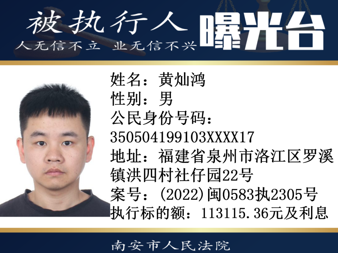 1、本期公布的案例信息均由南安市人民法院提供;2、本公布信息为办案系统显示南安市人民法院未实结涉案金额合计;3、被执行人未履行义务的具体金额以执行法院的认定为准;4、有关全国法院被执行人信息查询,详情请点击阅读原文。来源:南安法院4.突发!泉州一女子跳河轻生!4月30日上午10点12分