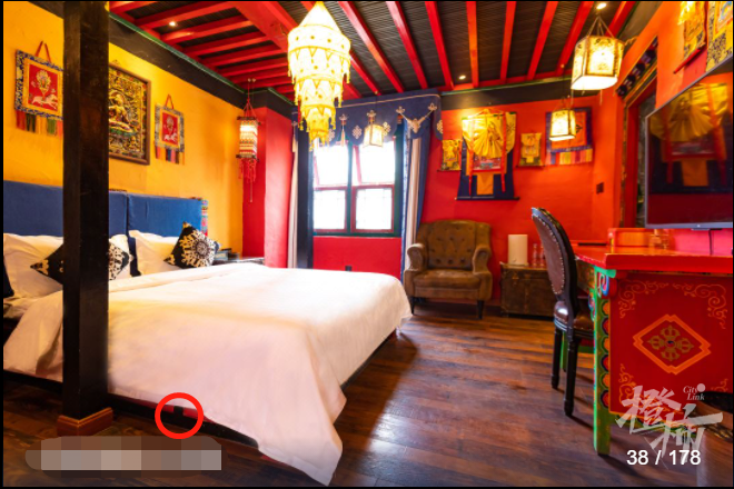 记者从该客栈在网上平台推介房型的图片看,大床房里,床距离地面大约至少有10-15厘米左右,不属于那种“榻榻米”式,尽管有床罩垂下来盖住了大部分空隙,但如果服务人员在清扫房间时,扫下床底是很容易发现的。