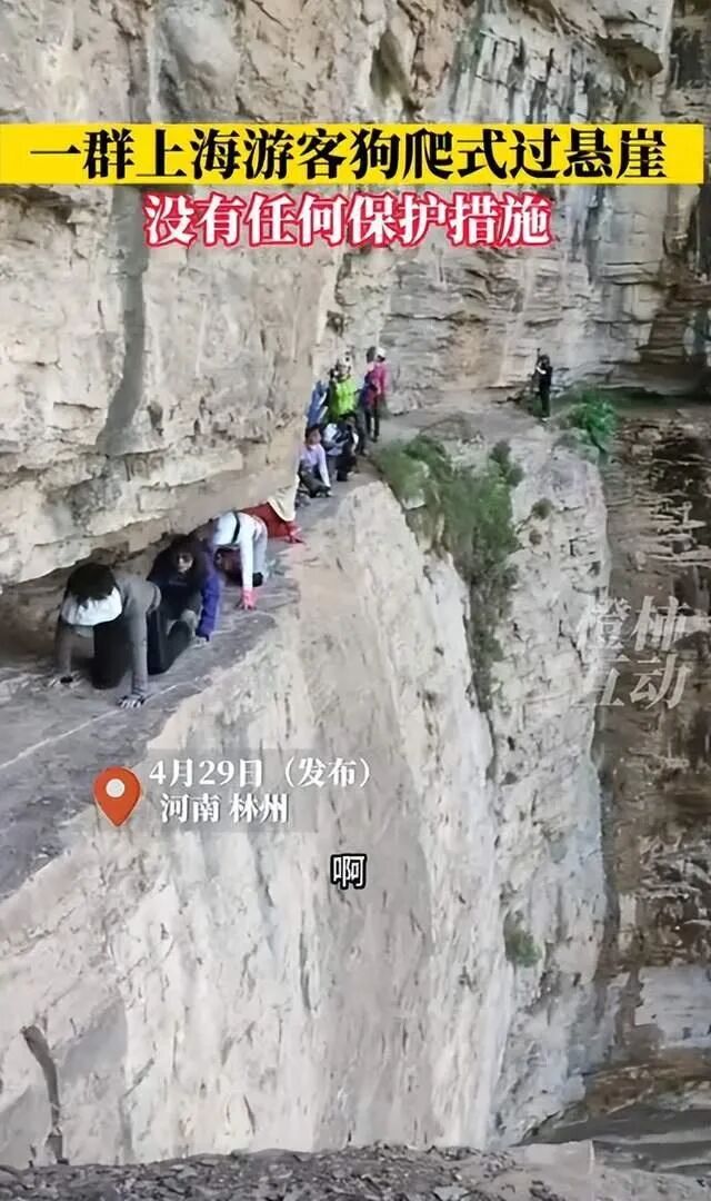 游客跪地“狗爬式”过悬崖!旅游 ..