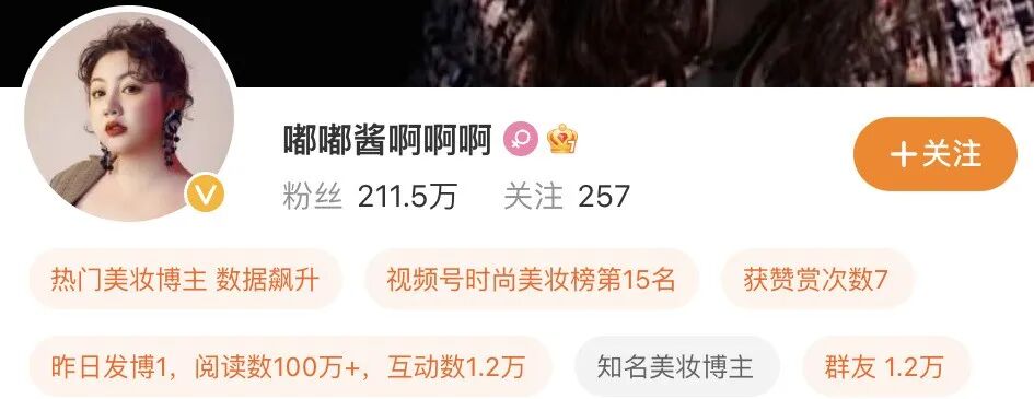 嘟嘟酱是位美妆博主,常在各大平台更新美妆视频,在微博上有211万粉丝、某音上拥有22万粉丝。