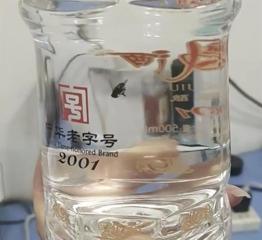 男子在未开封酒里发现苍蝇(来源:视频截图)6日晚,张先生(化姓)向极目新闻记者介绍,5月5日,他在陕西铜川一家烟酒店花160元买了一瓶西凤酒,晚上拆开外壳后发现酒瓶里有异物。“没开盖,里面有一只苍蝇。”张先生说,他对着酒瓶里的异物拍了视频,并拨打了酒厂售后电话,目前酒厂还在调查。“消费者怀疑自己买到了假酒。”陕西西凤酒股份有限公司售后人员告诉极目新闻记者,他们已经建议消费者向当地消费者热线进行投诉,后续通过正规途径对购买的酒进行真伪鉴定,如果确定是未开封正品,酒厂将会根据情况对消费者进行相应赔偿。来源:极目新闻