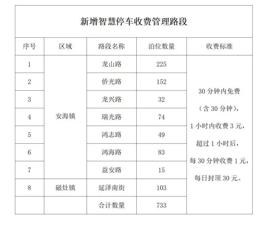 安海镇、磁灶镇新增733个智慧停车泊位5月11日至17日“一分钱”试运营18日正式启动停车收费!涵盖安海镇龙山路、侨光路、龙兴路、瑞光路、鸿志路、鸿海路、益安路,磁灶镇延泽南街等8条路段!