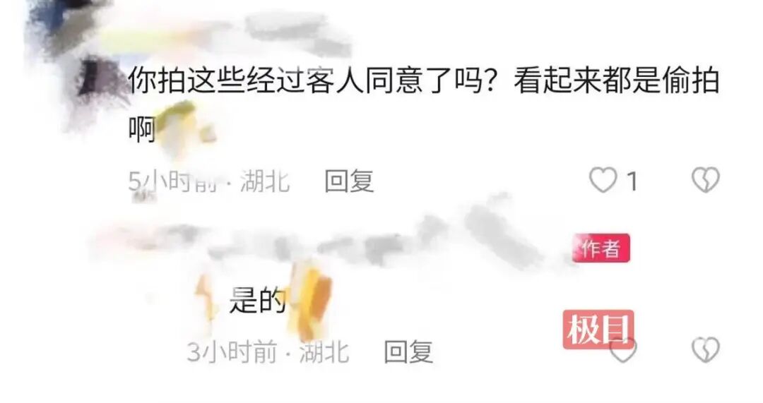 武汉市民周女士也说,今年1月,她就在短视频平台刷到该店发布的视频,很多是女顾客吃饭时的怼脸特写。“我当时就觉得不太对劲,感觉像偷拍,然后翻了翻评论区,果然有人问是不是偷拍,该店回复‘是的’。”