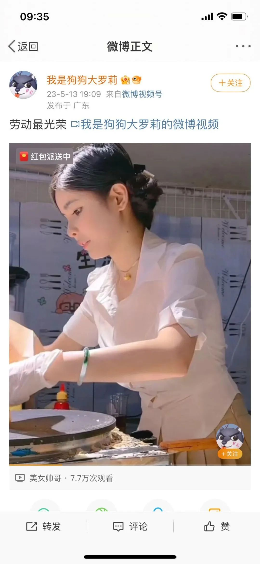 “狗头萝莉”回应网友对于她穿着的质疑 (来源:微博)5月17日,她发视频感谢网友支持,称摆摊第6天,差不多已经回了1/4的本,会继续努力。她解释了自己转型卖煎饼的理由,她表示知道自己名声不好,以前活跃在网络的时候,做什么都有很多限制。现在去摆摊,每天也会收到很多的举报。但她之所以每天站七八个小时去卖煎饼,是因为“有人能欣赏你摊好的每个圆,能夸奖你翻好的每个面,还笑容满面地告诉你,他很喜欢你。”这种快乐让她心情澎湃。她说:“我想不到世界上有什么事,能比这件事更加美妙,有什么事比接受别人的爱意和善意,更加地值得去追求。”“狗头萝莉”声明,自己不会雇人做摊,也不会抢着开分店,只想每天穿得漂漂亮亮的摊好每个圆,做好每个饼,希望大家能感受到快乐,她就觉得自己是有价值的。来源 | 极目新闻