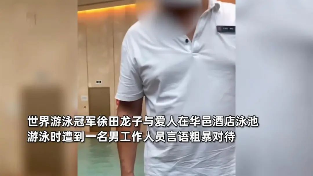 9月3日,安徽芜湖,世界游泳冠军徐田龙子与爱人在华邑酒店泳池游泳时遭到一名男工作人员言语粗暴对待。