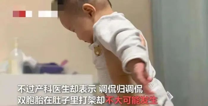 在“妇产科的陈大夫”看来,双胞胎在肚子里打架是个伪命题。她表示,胎儿并不能很好地控制他们的手脚。他们在子宫内做出的伸手踢腿都是无意识的行为,并非是在打架。胎儿的手脚也没有成人那么强的力量,又有羊水作为缓冲。她说,“他们活动手脚时,其实并不能对对方产生实质性的伤害。”