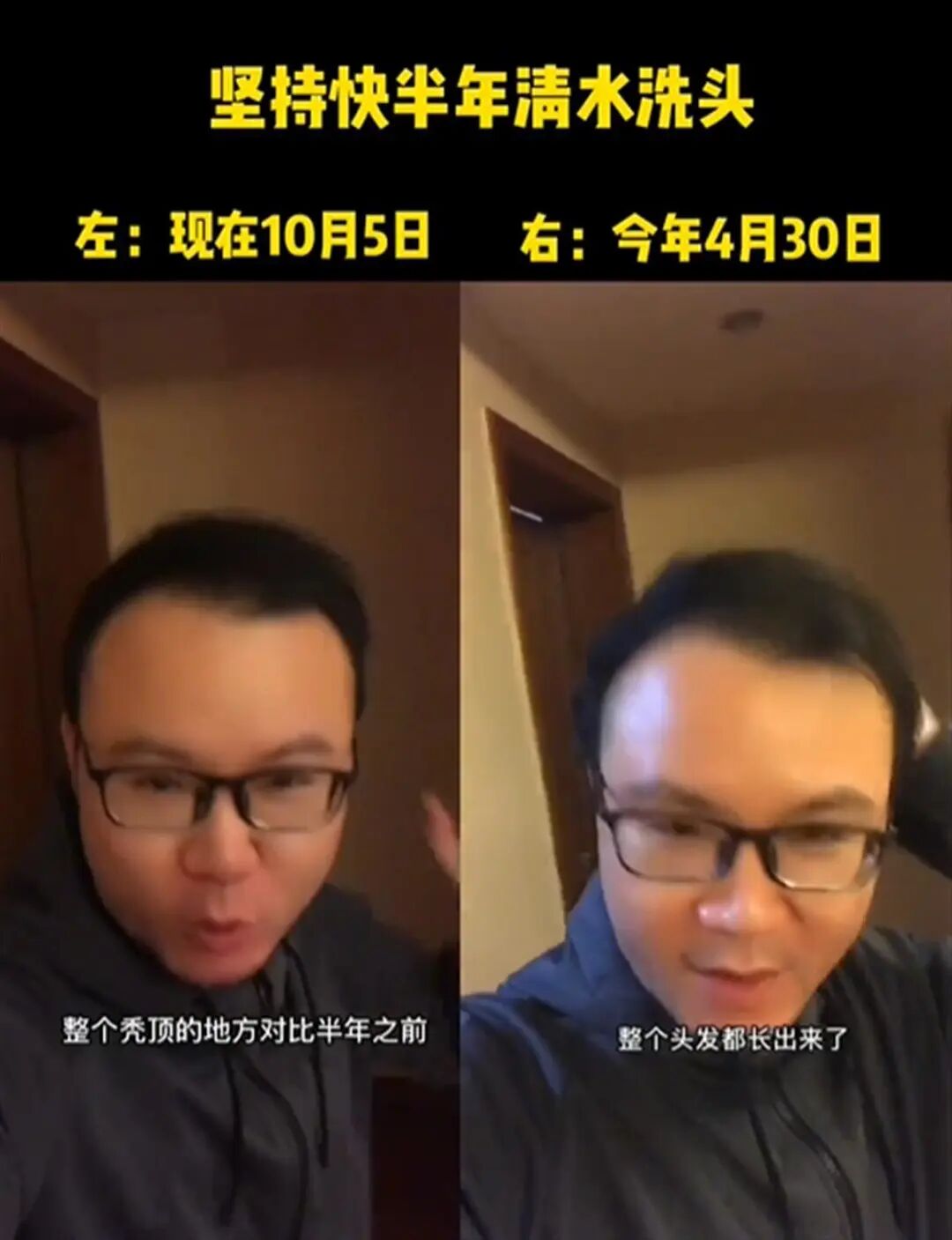 男子不用洗发水从秃顶变满头黑发?当事人回应