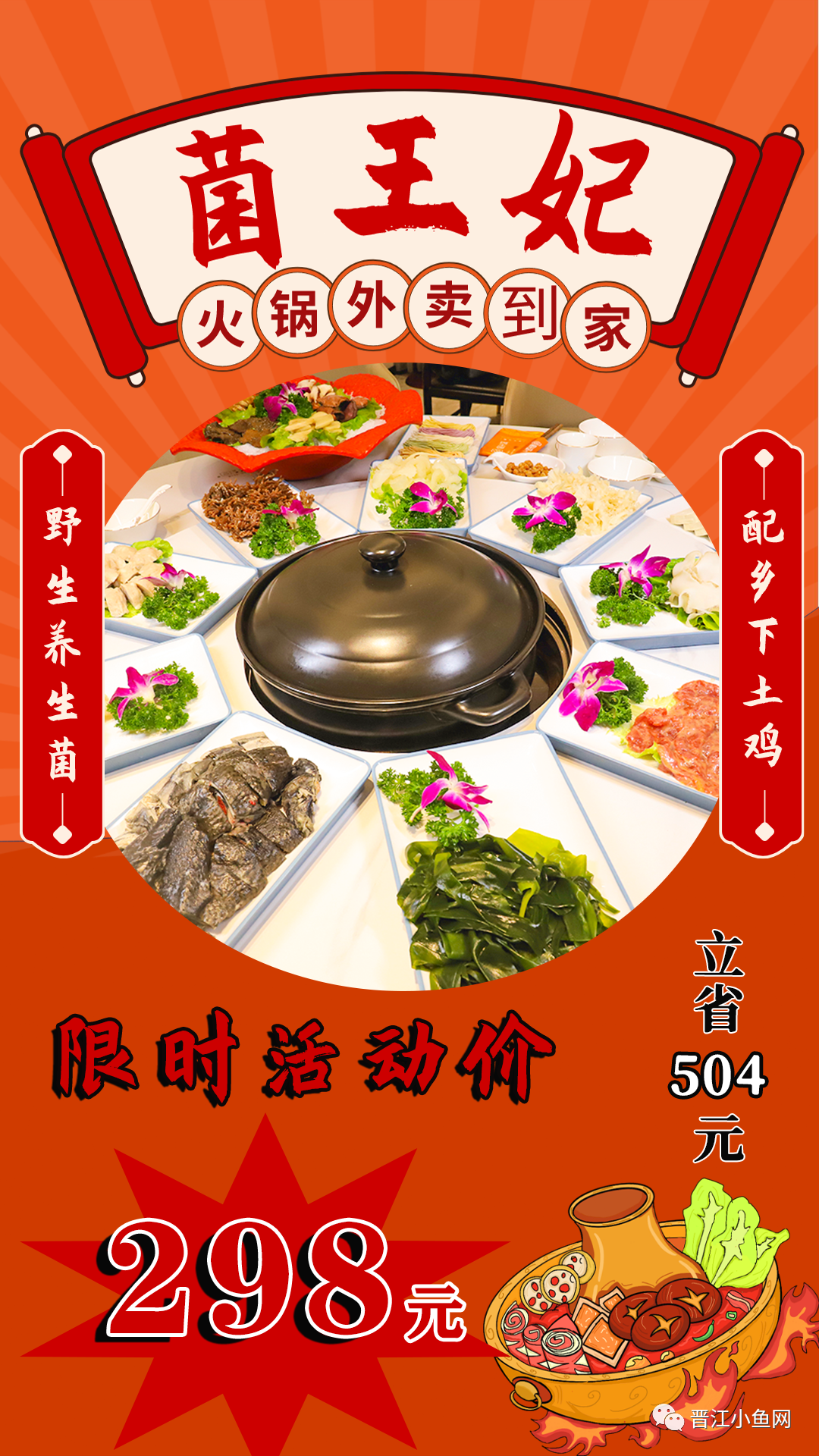 向 晋江小鱼网 后台发送口令 火锅 即刻抢 『菌王妃·野生菌火锅』