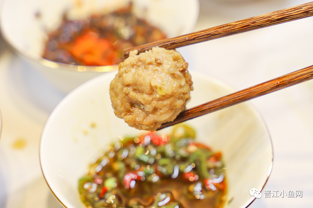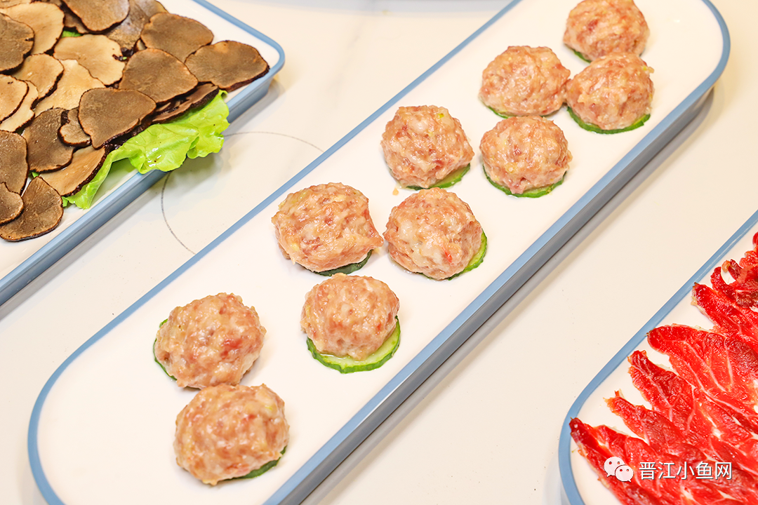 松茸肉丸  手打牛肉中加入来自长白山的珍贵松茸~ 咬开结实弹压的肉丸就能看到松茸粒藏在里面 味道鲜美~