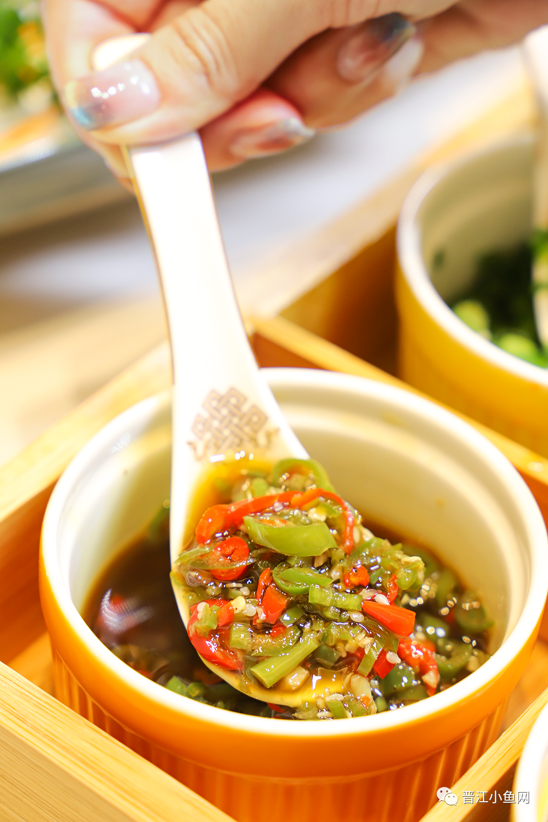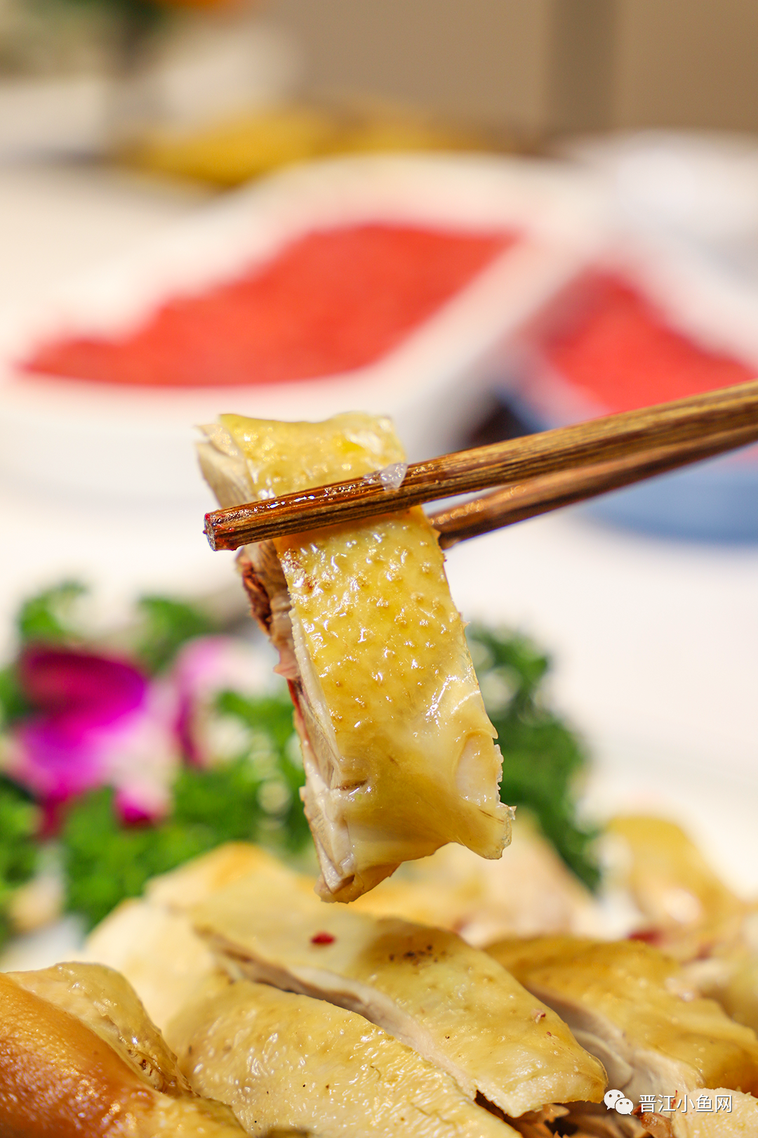 每一只鸡都是当天现杀现斩,非常新鲜 肉身厚实,看看这个黄澄澄的色泽 搭配蘸水,真的很勾人呐~