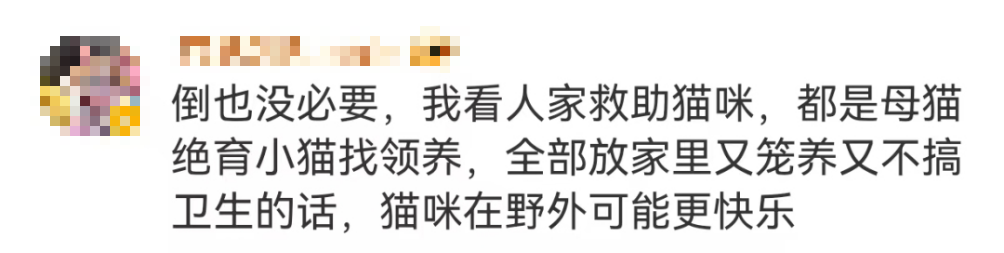 有的网友表示如果救助猫咪的结果是带他们去更糟糕的环境这样的爱心还是不要为好