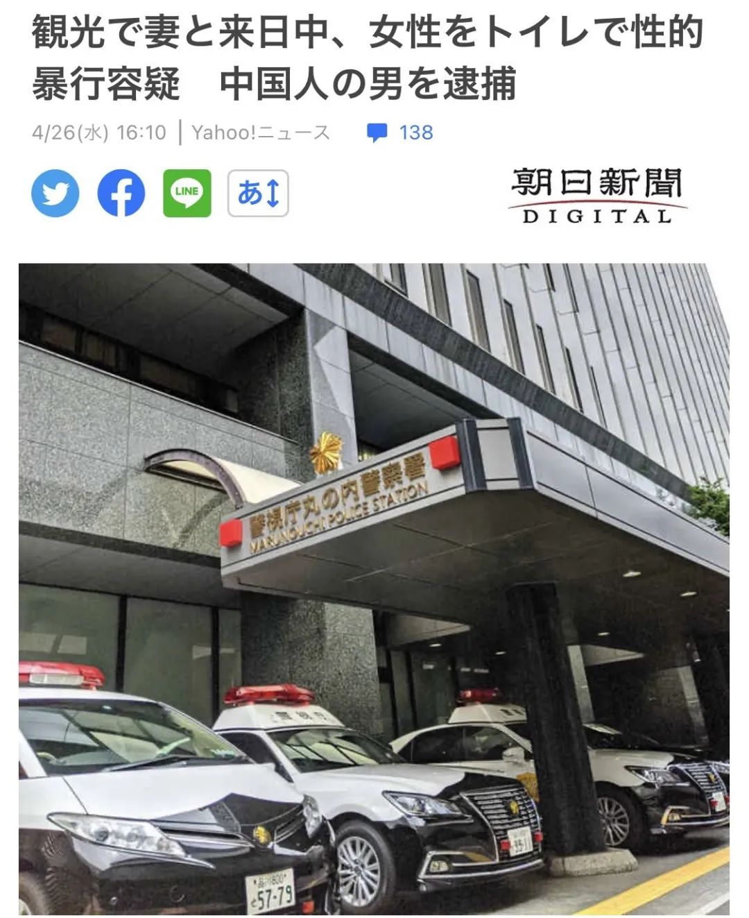 中国籍男子在携妻子赴日旅游期间,涉嫌性侵女子被捕