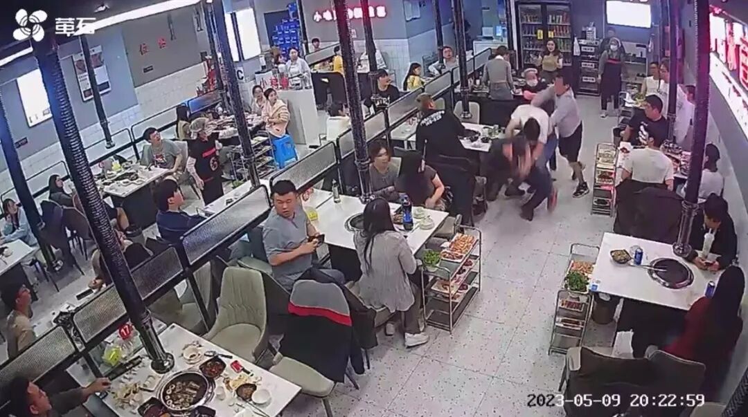 5月10日上午,当事烤肉店一名工作人员告诉极目新闻记者,视频中穿白色短袖上衣,出面保护三名女生的,是他们老板的侄子,“就是因为三名女生被骚扰了,老板的侄儿才和几名男子打了起来。”