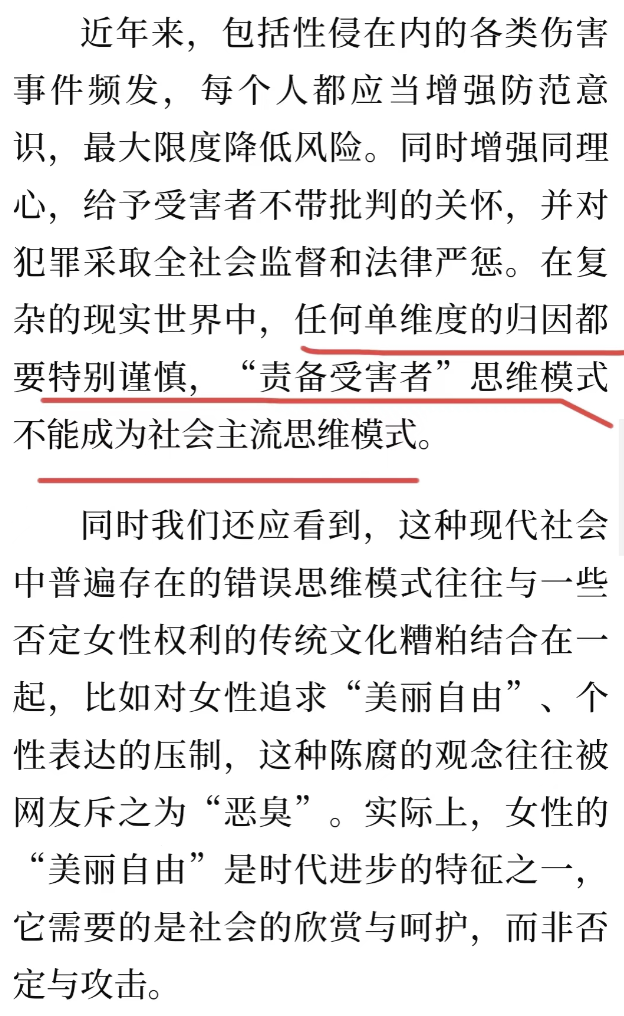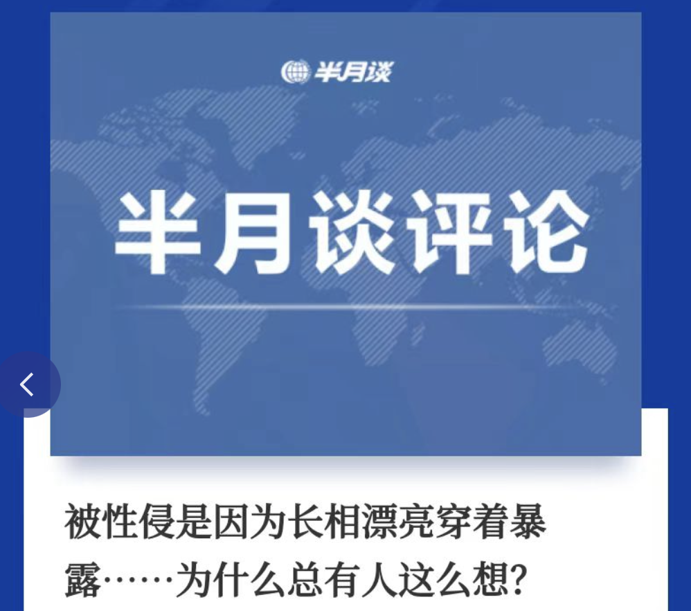 [font=mp-quote, -apple-system-font, blinkmacsystemfont, "]对此半月谈网发布评论[font=mp-quote, -apple-system-font, blinkmacsystemfont, "]《[font=mp-quote, -apple-system-font, blinkmacsystemfont, "]被性侵是因为长相漂亮穿着暴露?为什么总有人这么想?[font=mp-quote, -apple-system-font, blinkmacsystemfont, "]》[font=mp-quote, -apple-system-font, blinkmacsystemfont, "]对此事进行评价,其中提到: