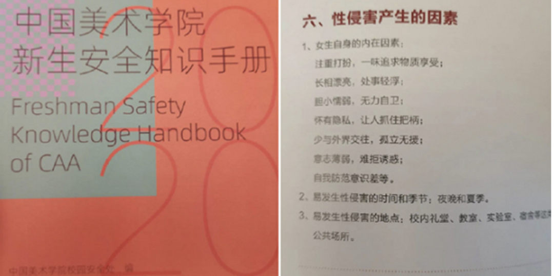 [align=start][font="]长相漂亮,穿着性感[align=start][font="]是性骚扰的理由吗? [font="]事实上,关于性侵或性骚扰是否与穿着长相相关的讨论已经不是一天两天了, [font="]2020年9月,中国美术学院下发的《新生安全知识手册》中在归纳“校园性侵害产生因素”的原因时,罗列了7条“女生自身的因素”,比如[font="]注重打扮[font="],一味追求物质享受;[font="]长相漂亮[font="],处事轻浮;胆小懦弱,无力防卫等。